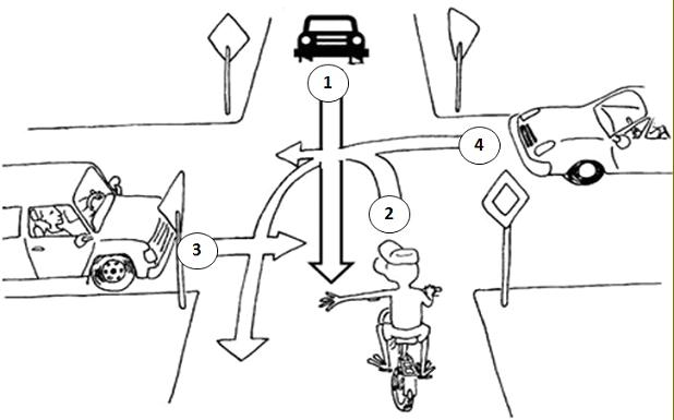 weil es auf der Vorfahrtstraße fährt, die beiden restlichen müssen warten.